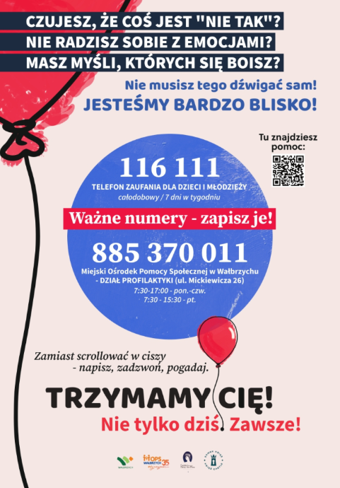 Nasza spółdzielnia mieszkaniowa włączyła się w realizację kampanii społecznej „Trzymamy Cię”, prowadzonej przez Miejski Ośrodek Pomocy Społecznej w Wałbrzychu. Celem projektu jest zwrócenie uwagi na problem przemocy, kryzysów emocjonalnych oraz sytuacji, w których potrzebne jest wsparcie i szybka pomoc.